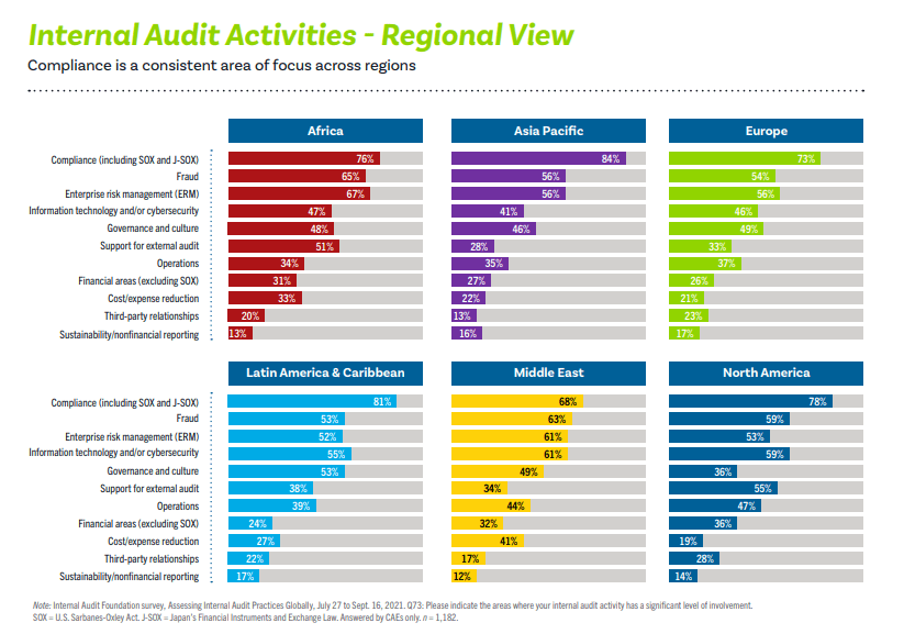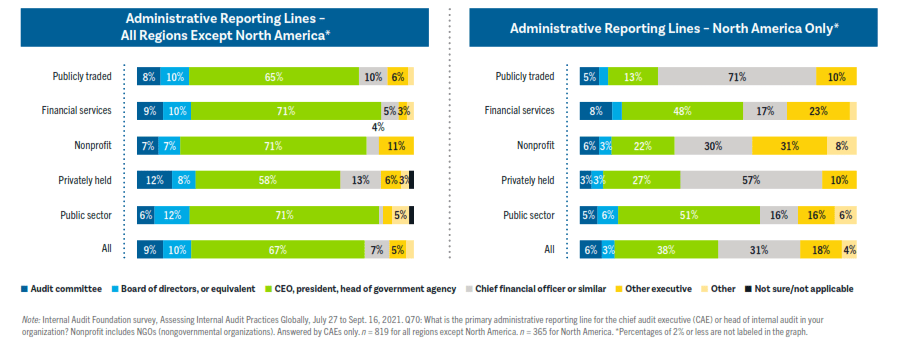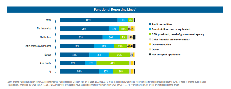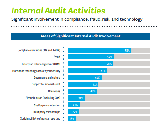 Below are the clips from the Internal Audit Foundation 2022 Premier Global Research paper pertaining to how internal audit primarily functions and reports from an overview perspective – however, as we move through 2023 and thereafter I do expect that future surveys will show changes, increased utilization, and increasing opportunities.