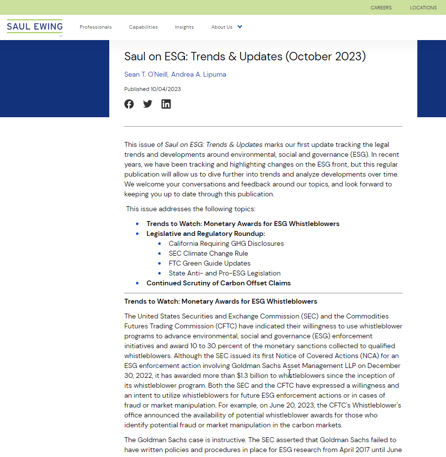 The following is a link to the entire newsletter https://www.saul.com/insights/alert/saul-esg-trends-updates-october-2023